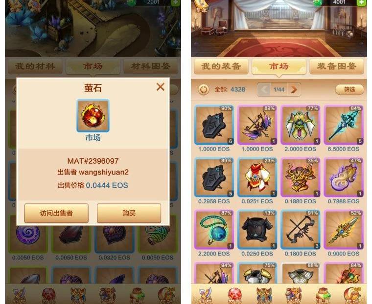 英雄交易所,目前一些稀有的橙色英雄價格可以達到13EOS2.挖礦玩法挖取資源交易:游戲設計了挖礦玩法,在礦井中挖礦,層數越深,產出的資源價值越高。挖出的資源可用于英雄的強化培養,也可在資源交易所中交易賺取EOS。