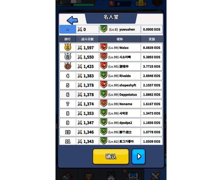 世界boss獎池與排行榜2.PVP排行榜:根據PVP成績排名,瓜分EOS獎池。