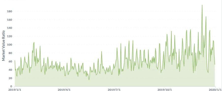 2019年BTC每日鏈上交易量可達1415469.2個BTC,相比2018年的每日鏈上交易量1156085個BTC,上漲了將近30%。每日鏈上交易次數328269次,環比增加了47%。BTC鏈上交易活躍度的增加與如下原因息息相關:2019年BTC價格低開高走,在下半年經歷了數個小高潮,并且最終穩定在了7000美金大關,相比2018年末的3000多美金價位,今年投資者對數字貨幣市場更為樂觀;同時受中國政府政策影響,今年下半年區塊鏈技術的概念在中國進行了一次大規模的普及,為數字貨幣市場帶來了大量的新鮮血液。