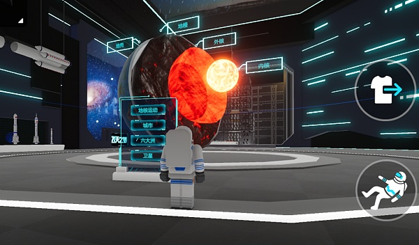當前階段,重啟世界把中國科技館“挑戰與未來”主題展廳太空探索展區作為第一站,對之進行數字化復刻,集中展現新中國成立以來我國在航天領域的科技成就,觀眾使用手機、平板或者個人電腦就能在真實沉浸的互動體驗中,探索地球與太空奧秘、領略科學精神。
