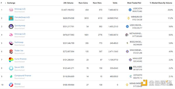 過去24小時去中心化交易所的交易量 數據來源:Coingecko
