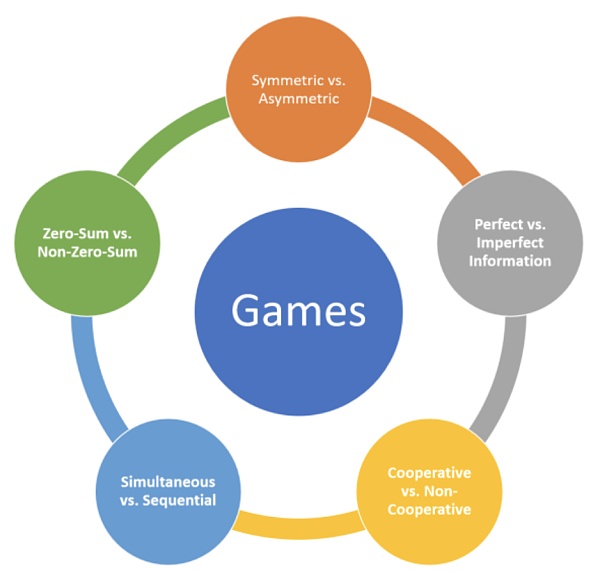 最簡單的游戲分類之一是基于它們的對稱性。對稱博弈描述了一個環境,其中每個參與者都有相同的目標,結果將僅取決于所涉及的策略。國際象棋是對稱博弈的經典例子。我們在現實世界中遇到的許多情況都缺乏對稱性的數學優雅,因為參與者經常有不同甚至相互沖突的目標。商業談判是不對稱博弈的一個例子,其中每一方都有不同的目標并從不同的角度評估結果(例如:贏得合同與最小化投資)。