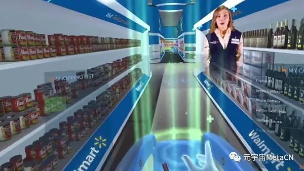 為了更形象地展現未來虛擬世界的購物場景,沃爾瑪近日發布了一段短視頻,視頻中用戶以第一視角將購物車推入超市。參考購物,甚至還有虛擬售貨員協助購物。