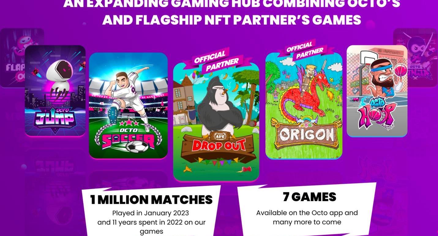 OCTO是一個社區驅動的超休閑PlayToEarn游戲中心,將各種游戲聚集在OCTO應用程序上,可在IOS和Android上使用。通過在OCTO應用程序上玩游戲,玩家可以在Solana區塊鏈和EVM鏈上玩手機游戲并從中獲利。OCTO目前已有超過300萬用戶,游戲場次超過5000萬次,其與2022年1月發售的限量4444個的NFT也在短時間內被搶購一空。OCTO的使命是成為第一個通過休閑游戲中心聚合器推動WEB3實現百萬級別的用戶增長。