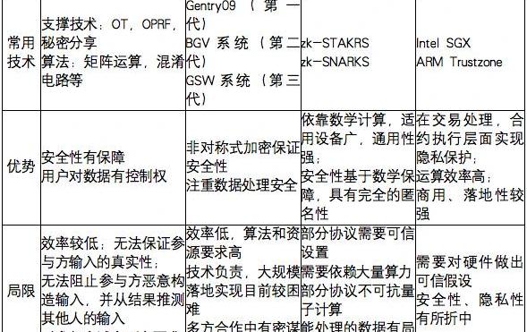 根據主流隱私技術對比分析,TEE在商用、大量隱私運算處理方面有較強優勢。