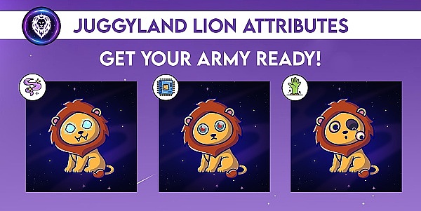 近期JGN先后推出了 JuggyLAND的收集、繁殖和交易功能,JuggyLAND取得了 7200個創世盲盒上線3小時售罄的好成績。以下是關于獅子屬性和其他相關信息的摘要,您可以以此來開始建立自己的軍隊。戰斗將在第一季度晚些時候上線,更多內容即將公布,敬請期待!