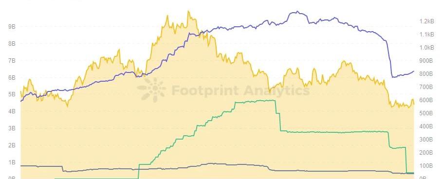 根據FootprintAnalytics的數據可以看到,USDC是本次事件的最大受益者。USDC的市值由原本的483億美元上升至541億美元,市場份額也由27%上升至34%。一直排名第二的USDC似乎迎來了新的機遇。