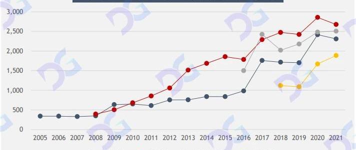 此外韓國游戲在亞洲的影響力一直很強大,韓國游戲出口中國市場占比一直處于領先地位,2017年隨著《絕地求生》在中國的火爆,韓國出口中國的規模達到35億美元,同比增長191%,2020年出口規模達到40億美金。