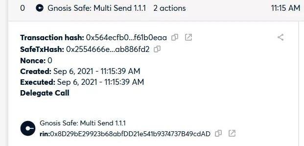 交易詳細信息顯示完整的Multisend合約地址以供驗證