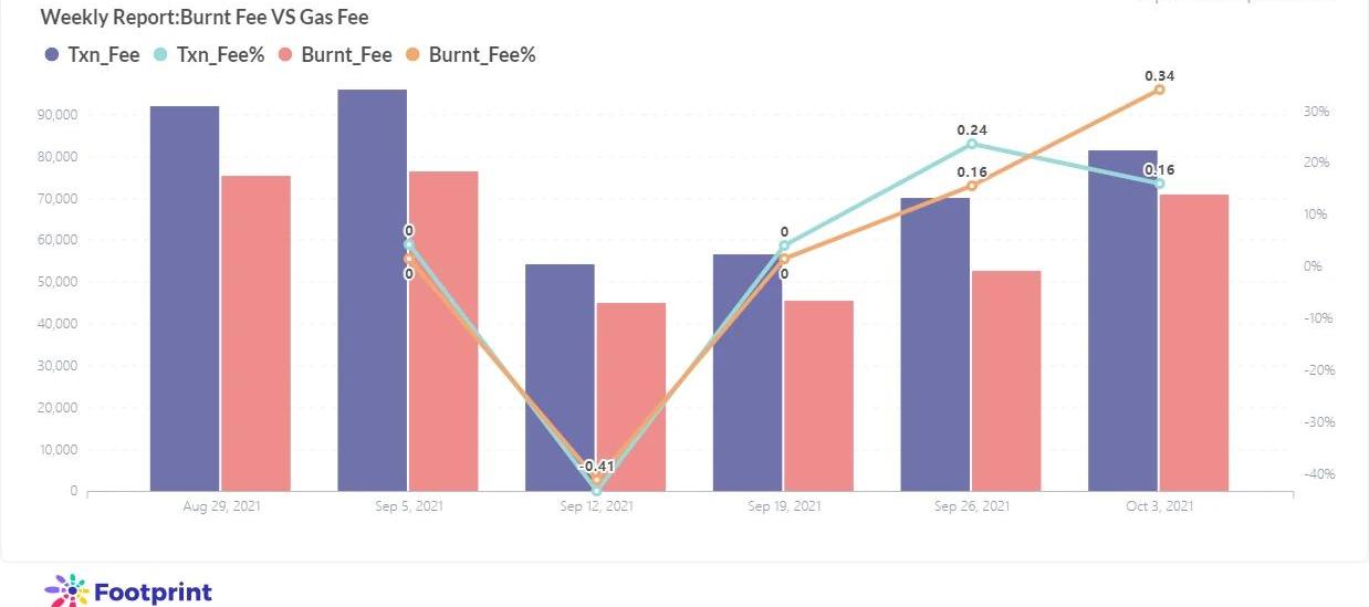 本周Gas費總消耗81446ETH,較上周上升16%;總燃燒70851ETH,較上周上升34%。本周選擇交易類型為2,即使用EIP-1559的用戶占比58.5%,較上周下降0.63個百分比,選擇EIP-1559近6周上升緩慢,均未超過60%。用戶似乎也逐漸意識選擇EIP-1559并不能對手續費的減少有較多的改善,選擇的用戶占比近期增長明顯放緩。