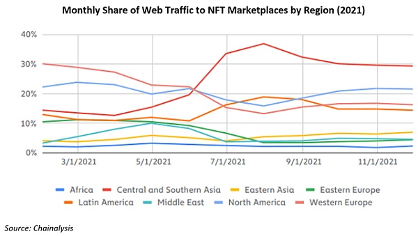 與比特幣 (BTC-USD) 和其他加密貨幣非常相似,NFT 由全球投資者交易。