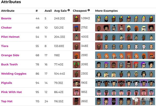 每個朋克類型都是用各種屬性來裝扮的。屬性越常見,朋克的價值就越低,但也有一些例外。