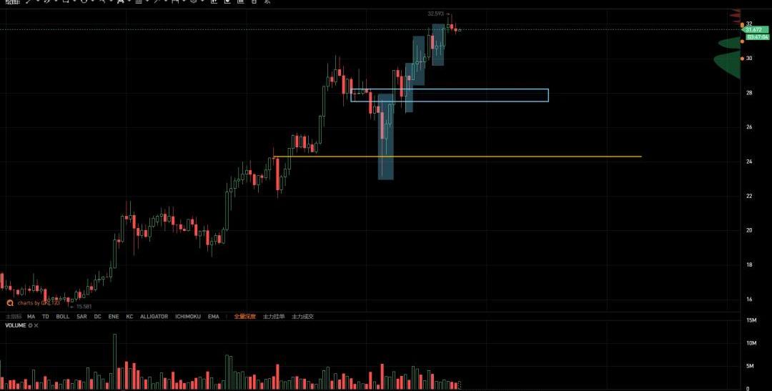 如圖所示,波卡4H級別上漲過程中形成多個孕線結構,均超過一倍的子線空間,后市可重點關注孕線結構策略參與趨勢交易,出現回踩或整理注意辨別符合趨勢的孕線結構信號。