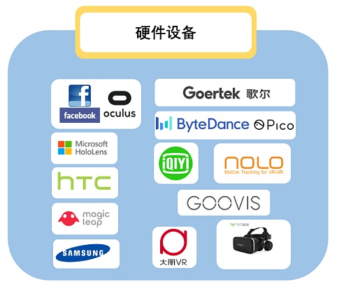 其他積極布局AR/VR領域的公司和主要VR廠商有HTC、Magic Leap、三星、愛奇藝、NOLO、酷睿視、千幻魔鏡、大朋等。