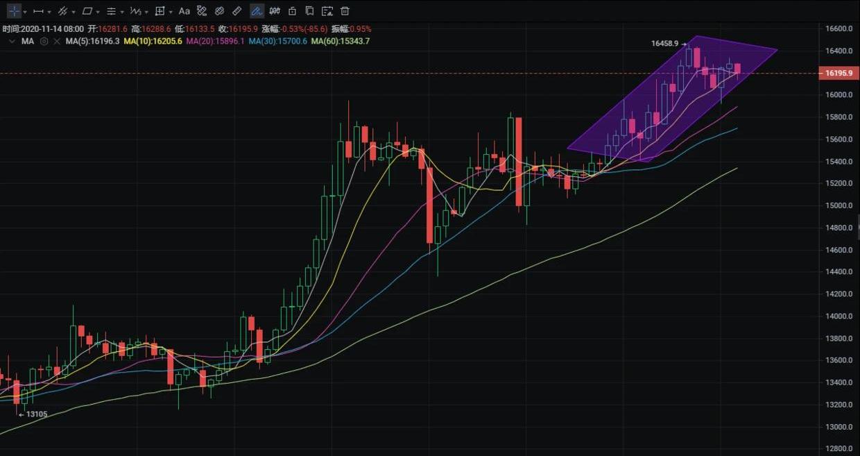 1900/1/1 0:00:00昨晚比特幣繼續創新高,行情從昨天凌晨的反彈開始發動,一路上行,在今天凌晨12點左右,先是突破前高16477,而后繼續上漲,最高時到達16880,當前依然在16700附近運行,單日大漲接近5%.
