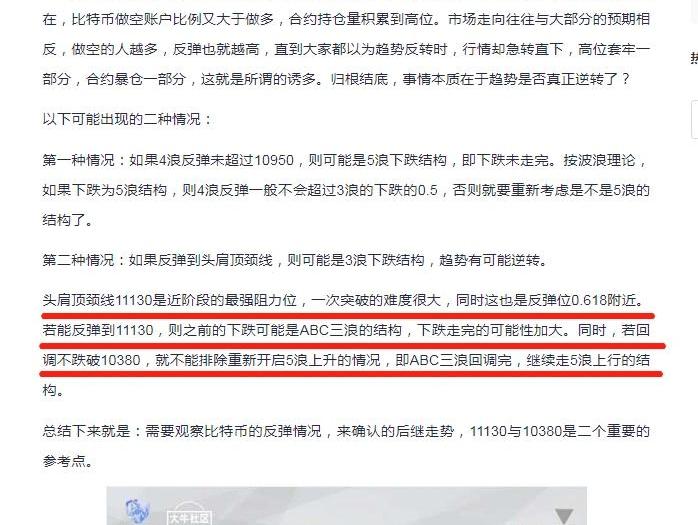 XRP/HKD-0.68%比特幣行情在昨晚經過一輪拉升后運行到了11100附近,正好符合昨天文章中講到的頭肩頂的頸線位置,隨后承壓回落,目前處于10930附近,昨天我們講過,如果行情是一個正常的五浪下行形態,則4浪一般不會超過3浪的0.5回撤這個位置,如果出現突破,就需要重新考慮是否為5浪結構了,而當行情突破至頸線這個位置那么此前的很有可能就是三浪形態,代表著前期的下跌很可能走完了,而此時我們需要關注回撤的低點,如果回撤點不突破10380,就不能排除重新開啟5浪上升的情況,即ABC三浪回調完,繼續走5浪上行的結構。