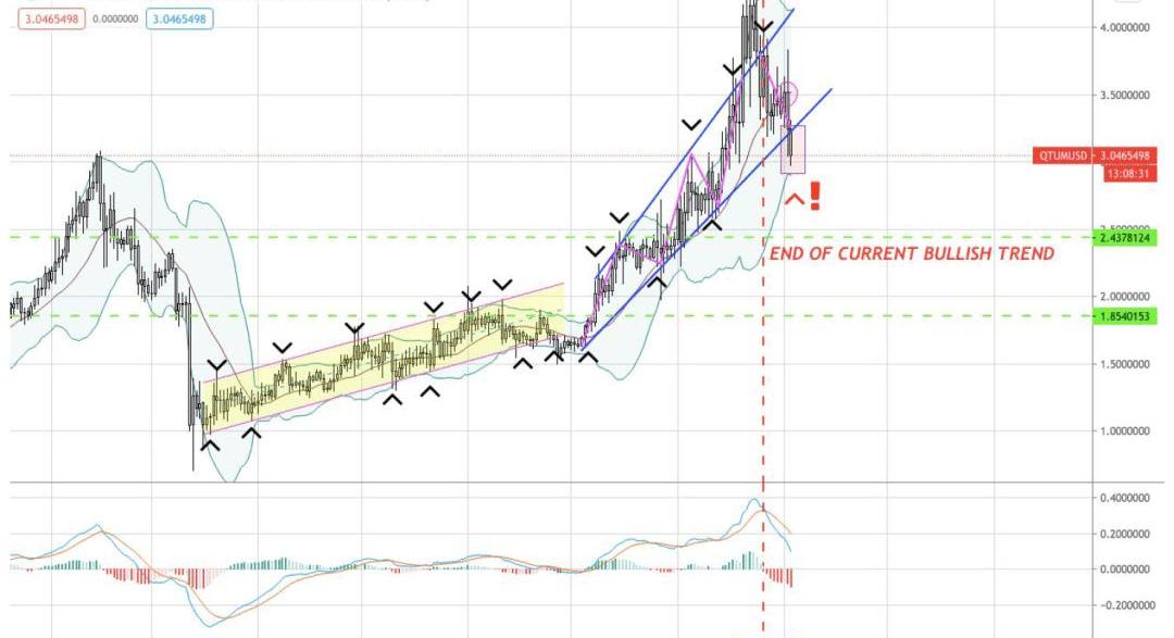 QTUM自3月以來表現非常好,然而正如下面所展示的QTUM的看漲趨勢已經結束。