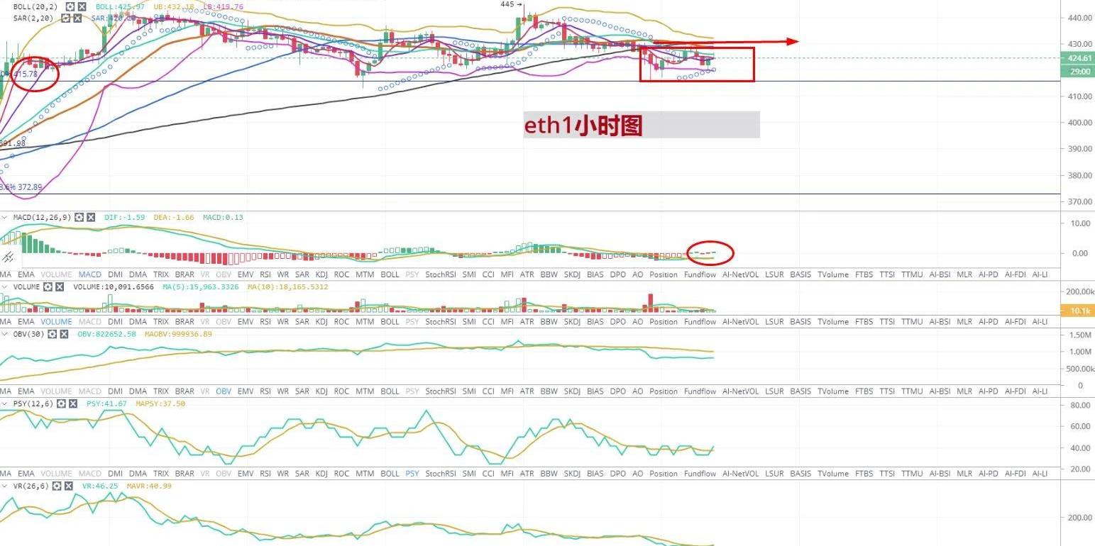 持幣者昨日以太坊聯動比特幣進行了一波誘多,最高點達到445一線,隨后幣價進行回落,最低點達到415一線,在MACD指標中,多空來回交替短暫方向不明。上方壓制位在430一線,支撐位在持幣者圖中415.78一線。