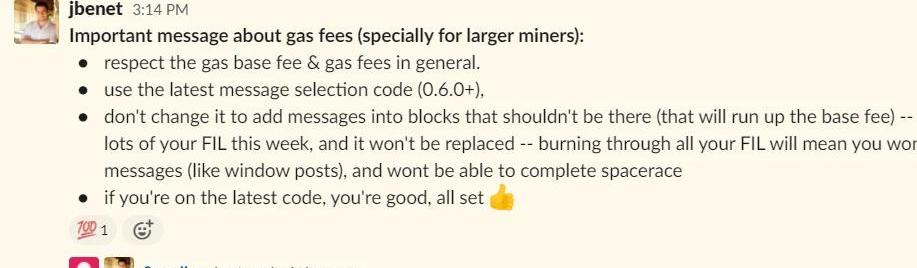 對于最近FilecoinGas費用不斷攀升的問題,Filecoin創始人胡安·貝內特在Slack社區表示:
