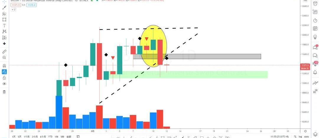BTC來說,日圖跟隨外盤下跌,跌破了近6個交易日的低點,目前在11190有一些反彈力量,但這不能改變短期空頭占優的情緒,今日看空。
