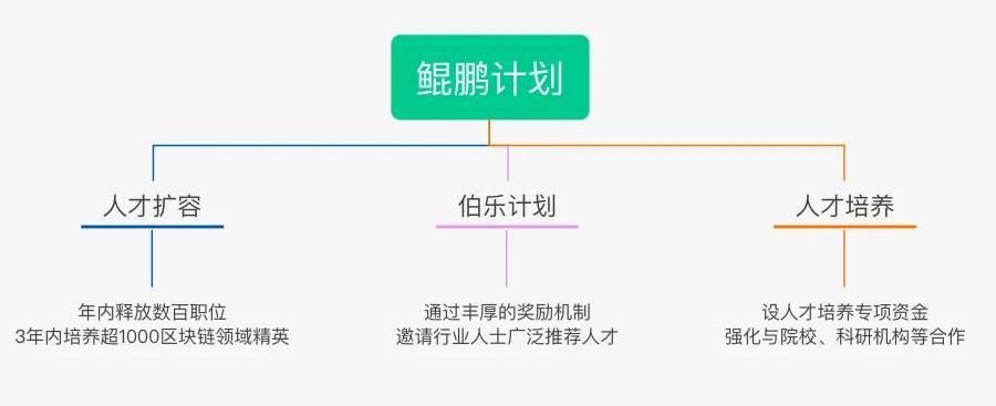 此前,區塊鏈產業集團歐科云鏈也曾于今年5月啟動區塊鏈人才發展“鯤鵬計劃”,從“人才擴容”、“人才培養”、“伯樂計劃”三個維度,全面助力區塊鏈產業人才發展: