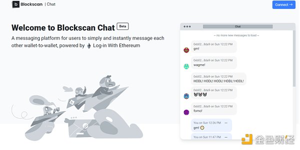 該網站主頁披露的信息顯示,Blockscan Chat是一個消息傳遞平臺,用戶可以通過錢包到錢包輕松、即時地相互發送消息。網站上寫道,要使用它,您必須連接到 MetaMask 等以太坊錢包。具有以太坊地址的消息接收者將通過區塊瀏覽器收到通知(盡管該消息不會在區塊瀏覽器上公開)。