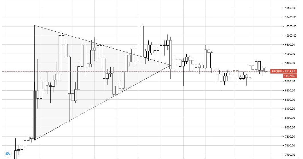 幣價僅在9450美元-9000美元區間內波動,這段時間的極低波動率意味著BTC很可能正在為大的走勢做準備,盡管這個走勢的方向仍然有些不明確。上一份報告中的突破位仍然和以前一樣--目前還不清楚BTC將向哪個方向波動。