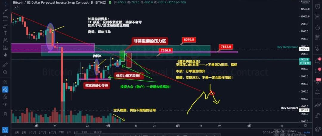 直播中談到非常重要的一個觀點不是趨勢,而是我們要警惕在接下來放量上漲過程中的買入高潮,根據經典波浪+威科夫操盤法理論中的觀點,行情總是會在買入高潮中結束,而這一點我們也比較有體會,比如大牛市的時候,周圍的大爺大媽都高喊著區塊鏈革命的時候,那么行情大概率即將結束,股市如此,數字貨幣市場更是如此