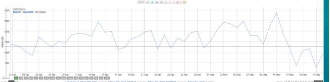 為了減少BCH和BSV臨時流入的算力的影響,計算2020年1月1日至5月11日的平均算力為111.00EH/S,計算5月12日至5月18日的平均算力為99.77EH/S,減半后平均算力下降10%。