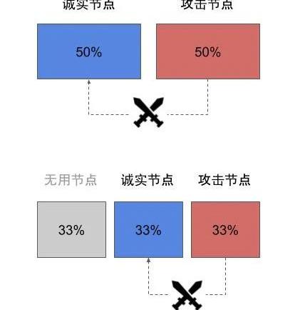 我們想要擴容,能做的是要么把區塊的尺寸變大,要么縮短出塊時間,要么兩個都變。我們先試試出塊速度從10分鐘改成半分鐘。這下亂了,考卷還沒有發完有些童鞋就做完開始拿下一套考卷做了。于是教室里的混亂場面一度無法控制:滿地的做了一半的考卷,大家都在忙著收新來的考卷。這個參數的調整導致出現大量的孤塊和分叉,不僅大量的網絡算力被浪費了,而且更關鍵的是我們前邊說的同步帶來的安全模型也蕩然無存了:每一套新的試卷,都沒發給全班呢,就有一小簇童鞋做出來了。于是重新發下一套試卷。也就是說平均每個童鞋就只做了15秒的題,就得要么完成要么白做了。這個直接帶來的結果就是只有一半的算力在做有用工作,另外一半在做錯誤的考卷。從網絡攻擊者的角度上看,如下圖所示,TA其實只是在和一半的算力在拼,也就是說只要他的算力占全網絡的33%,TA就有可能贏,而不是我們平時所說的50%