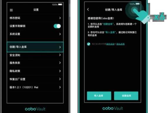 ①進入“創建/導入金庫”頁面,連續點擊頁面右上角6次,進入設置Passphrase頁面