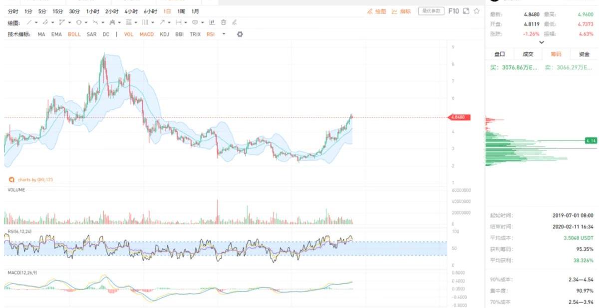 BTC站上200日均線,疊加減半利好預期,BTC有望走出一波上漲行情,近期若站穩10000美元,還會有不錯的上升空間,倉位不重者,可逢低加倉。
