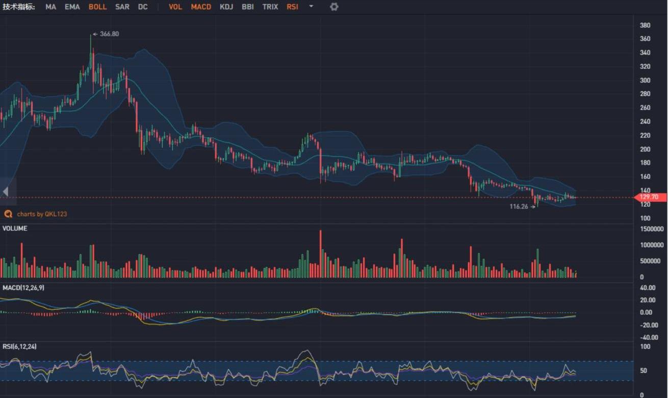 今日凌晨ETH最高觸及133美元后震蕩下行,目前在130美元左右有所企穩。近日的量能持續萎縮,振幅收斂,短時變盤的可能性加大。