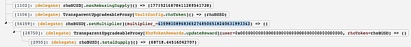 ③惡意代幣合約調用FlurryRebaseUpkeep合約的performUpkeep方法,對Vault合約的相關金額進行重新統計,并更新了與之相關的Rho代幣的multiplier。