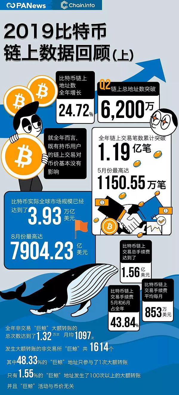 幣價的起起伏伏之間,普通用戶、“巨鯨”、交易所和礦工各自上演了怎樣的故事?PAData與專注于區塊鏈交易的一站式數據服務平臺Chain.info一起回顧2019年比特幣鏈上數據,并發布“2019年比特幣鏈上數據榜單”,從數據一窺比特幣網絡的真實圖景。