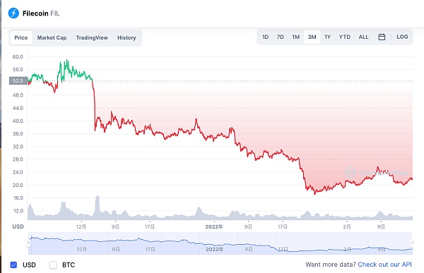 然而,從2021年5月份開始,Filecoin卻一改“高燒不退”的局面,逐漸走上了平穩的道路,眾多Web3.0投資者和愛好者的情緒從熱潮中冷靜了下來,FIL也開始了它的“冷靜”之旅。截止到2022年2月15日,FIL的價格為21.2美元,已經逐漸回歸初始價格。