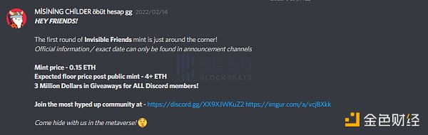 此前 Invisible Friends 推出了一個慈善特別版 NFT Golden Friends,通過拍賣最終以 496.69 ETH 價格成交。[2022/2/28 12:20:23]