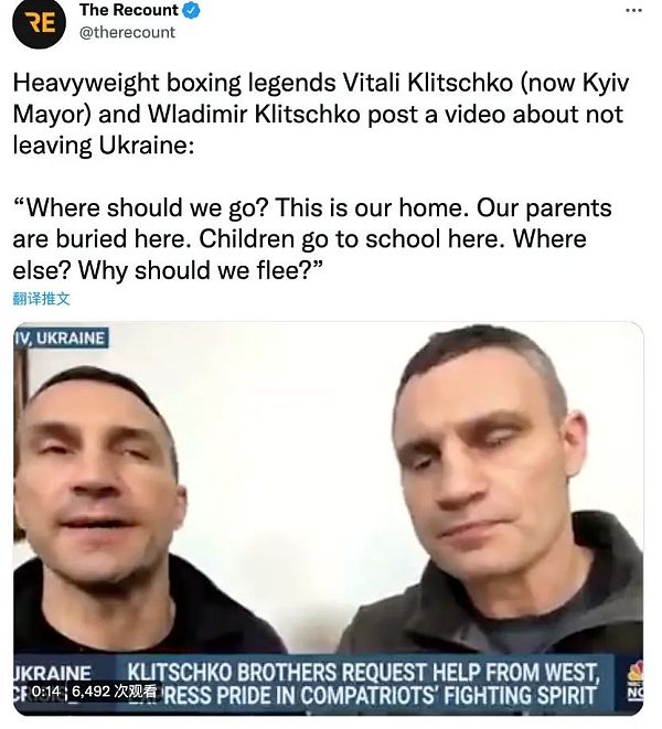 拳擊手兄弟呼吁民眾留在烏克蘭