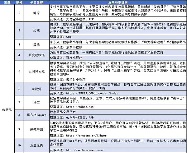 綜合調研情況來看,國內阿里、騰訊這類互聯網巨頭推出的聯盟鏈NFT平臺探索步伐相對謹慎,目前大多主打收藏品市場,支持的功能、合作方、營銷模式都大同小異,權屬界線上有待清晰明確,應用場景方面也留有較大創新探索空間。其它如趣鏈紅洞數藏“元宇宙煙花”、中國人壽“財寶節限量數字紀念藏品”等活動與元宇宙概念融合,推出了數字化引流工具、NFT可編程藝術作品等新玩法。
