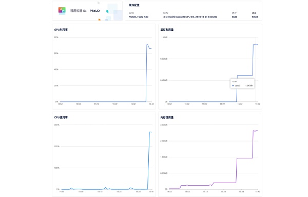 在訓練使用過程中你還可以查看機器監控,看機器的GPU、內存等使用情況。