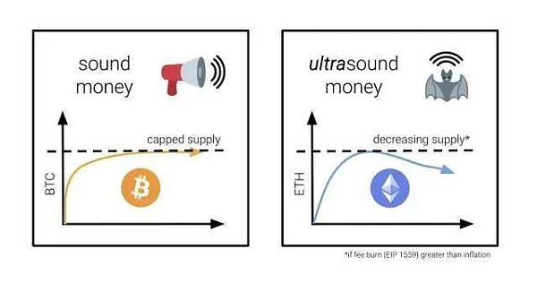雖然該定義解釋了如何將ETH與債券等資本資產進行比較,但距離“永久債券”的定義還有很長的路要走。這時候就不得不提一下“超健全貨幣”的描述了,這個說法由以太坊基金會的密碼學家研究員Justin Drake于2021年初創造,并受到以太坊愛好者的推崇。Vitalik Buterin對此表示贊同,他認為ETH正走在成為“超穩健貨幣”的道路上。