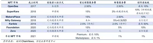 表2:主流NFT市場平臺的服務費與版稅設計收入