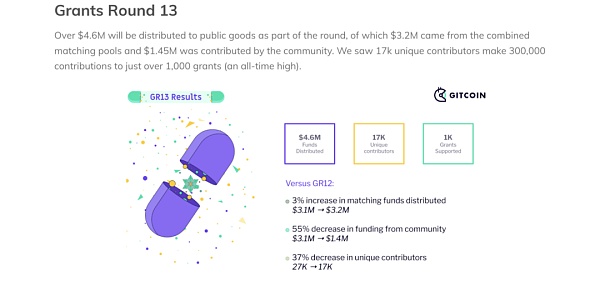 Gitcoin 第13輪資助分布,來自他們的公告頁面