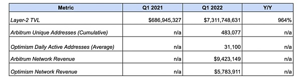 以太坊蓬勃發展的 L2 (第二層) 生態系統在 2022 年第一季度繼續增長。