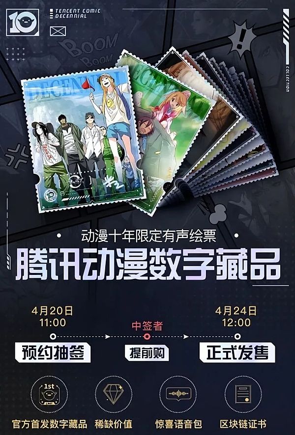 而像騰訊動漫App推出十周年紀念的數字藏品,不僅有相關動漫IP的插畫,還配上了IP相關的定制音頻。如此具有紀念意義的數字藏品,價格上漲100倍也并非天方夜譚。