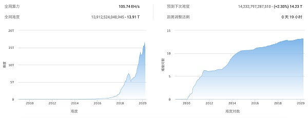 截至發稿前,BTC全網算力為105.74EH/s,挖礦難度為13.91T,距離下次難度調整還有22小時,預計調整為14.21 T,上漲2.17%。