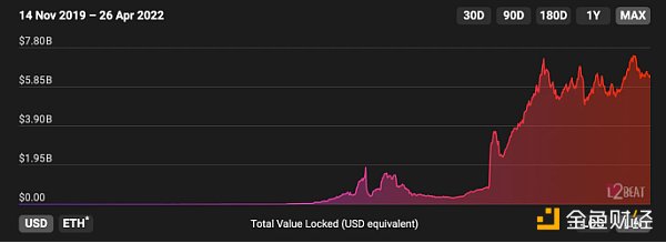 DeFi 總鎖倉價值(TVL)從 491 億美元增加到了 895 億美元,增長了 82%。這衡量了存入基于以太坊的 DeFi 協議的資產價值,如去中心化交易所、貨幣市場和期權金庫。