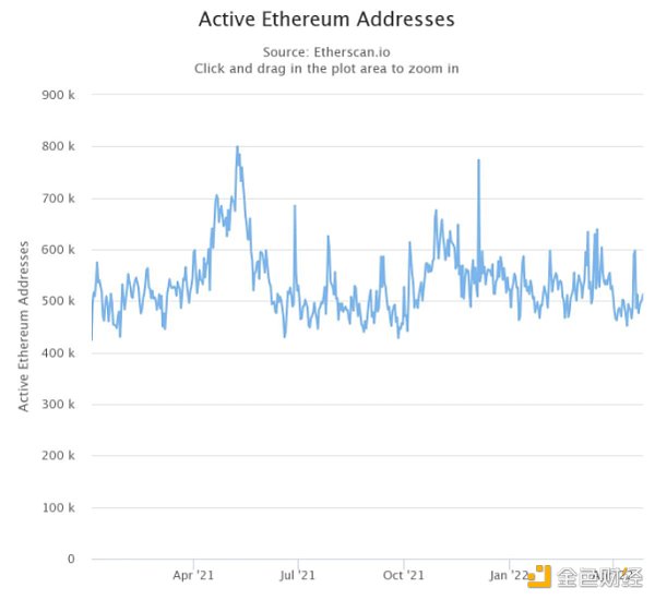 每日平均活躍地址從 507,662 個上升到了 529,018 個,上升了 4%。這一數據跟蹤了本季度內每天與網絡互動的平均地址數。