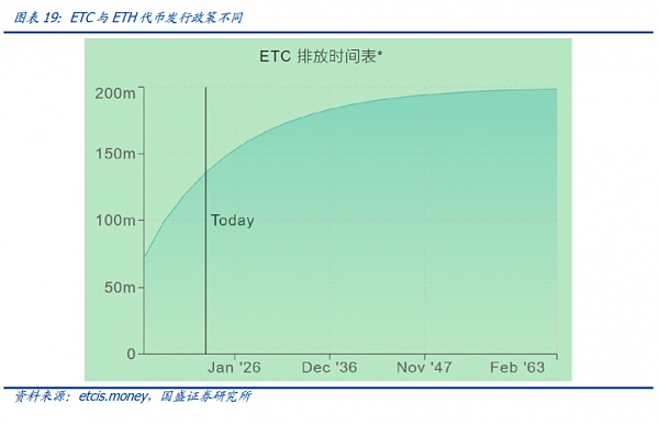 2.發展前景才是關鍵,ETC早已選擇與ETH不同的路,區塊獎勵與發行上限等關鍵設定均不一致。2017年3月1日,以太坊經典社區就新的貨幣政策達成共識:受比特幣啟發,ETC將有2.107億的發行上限——每500萬個區塊減少20%的區塊獎勵。其中,2022年4月,ETC的區塊獎勵將由3.2 ETC下降為2.56 ETC。這顯然與ETH發行無上限的基本設定不同。