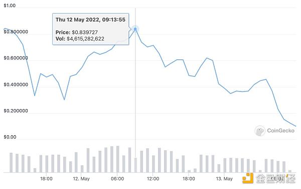 512早9點,UST在交易所價格達到3d高點,此后一路走低,LUNA的價格也是。